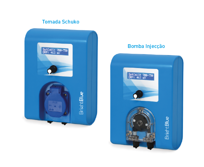 Sistema digital de medição e regulação de cloro (ORP), para piscinas privadas, públicas e comerciais. Duas opções disponíveis: Tomada Schuko ou Bomba de Injecção.